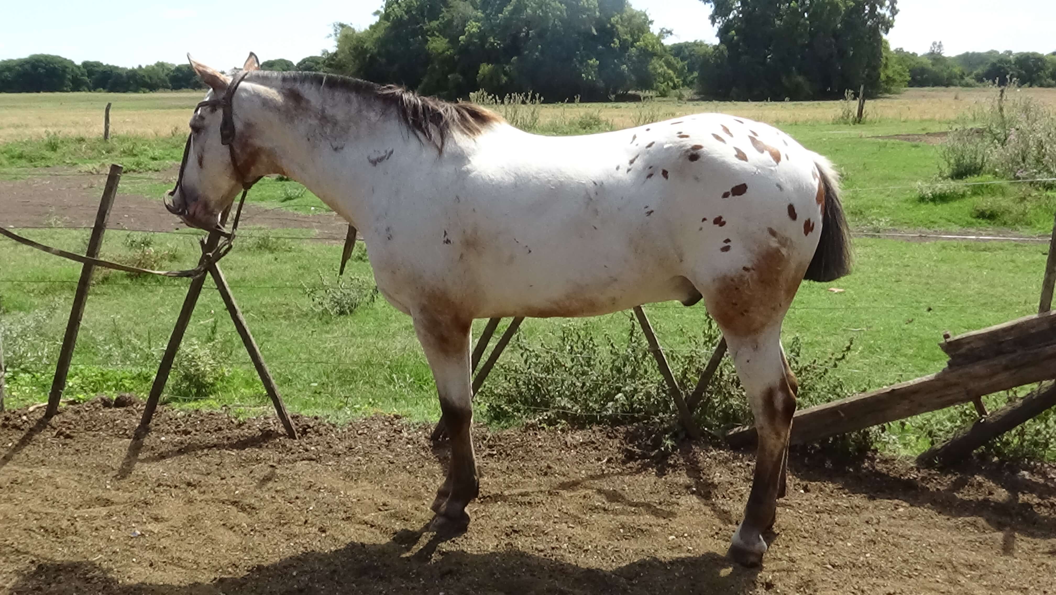 Caballo anca pintada muy manso y lindo. Su edad es de 7 años aprox. Sualzada es de 146/ 7.