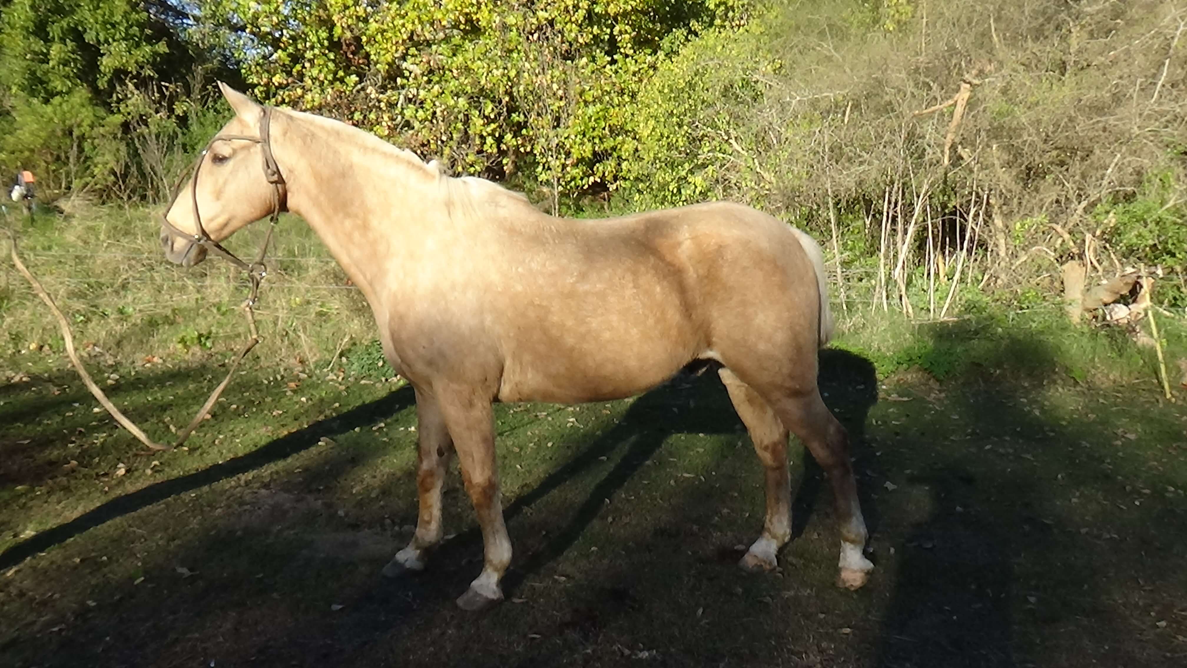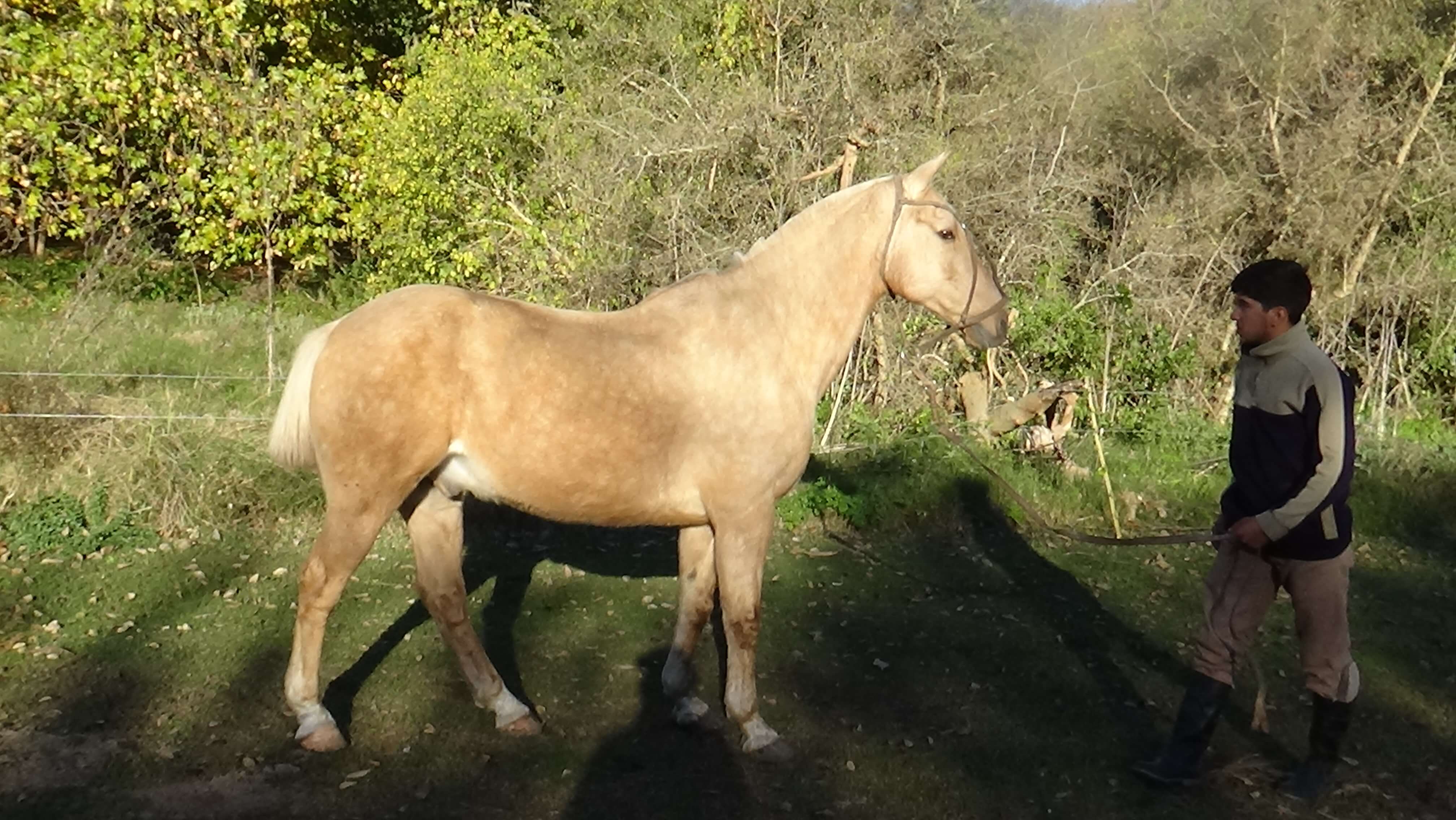 Caballo bayo rodado, se pone bien naranja cuando pelecha, de hermosa figura, especialmente su cabeza , orejas y cuello. Su alzada es de 151/2. Su edad es del orden de los 13/15 años. Es un caballo de edad en perfectas condiciones fisicas y gran estado.