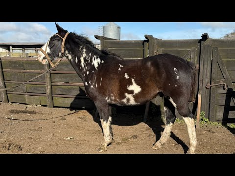Este caballo overo negro tiene una alzada de 155 cm a la cruz (tomados con la cinta metrica) y 3 años de edad.