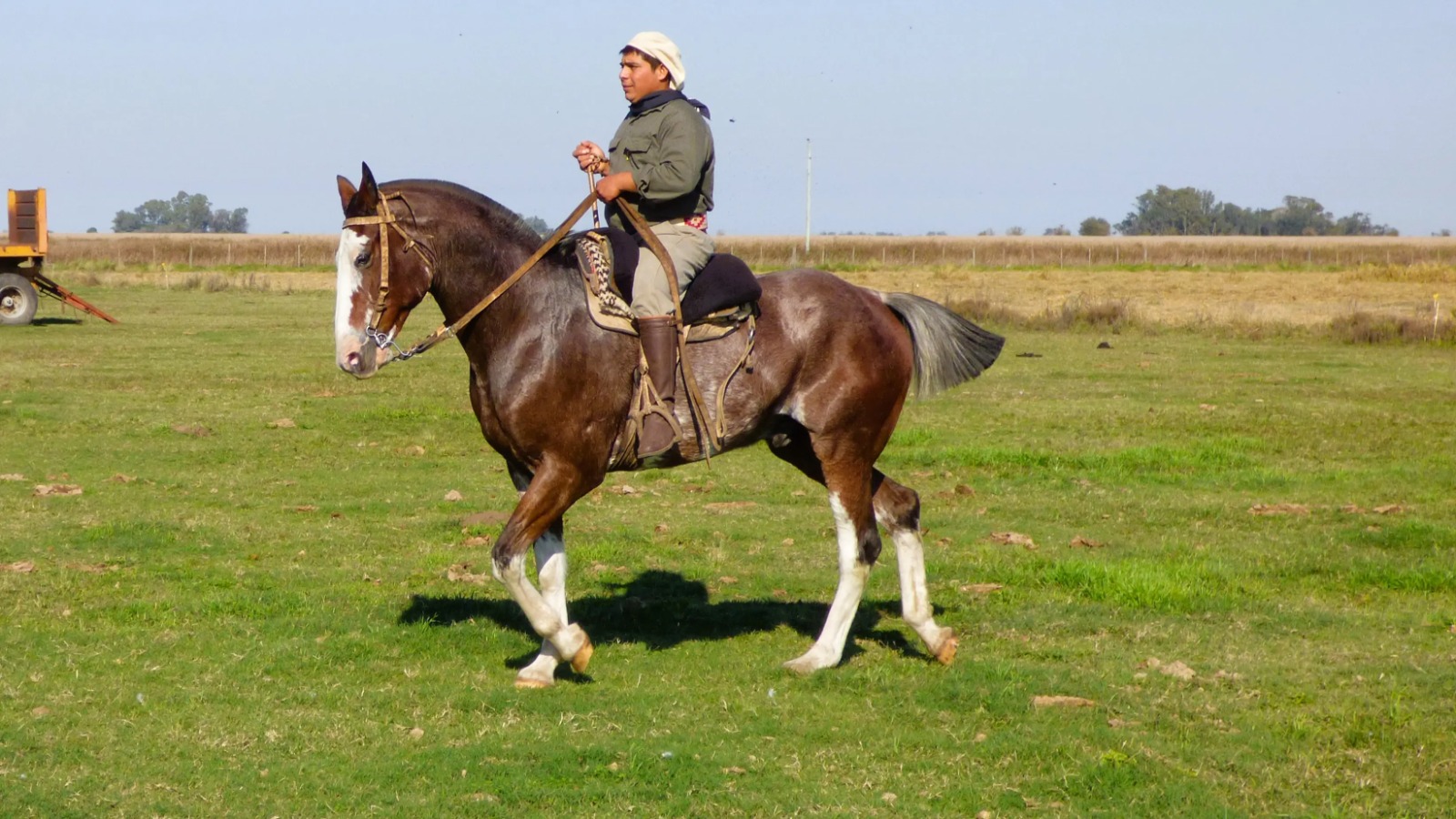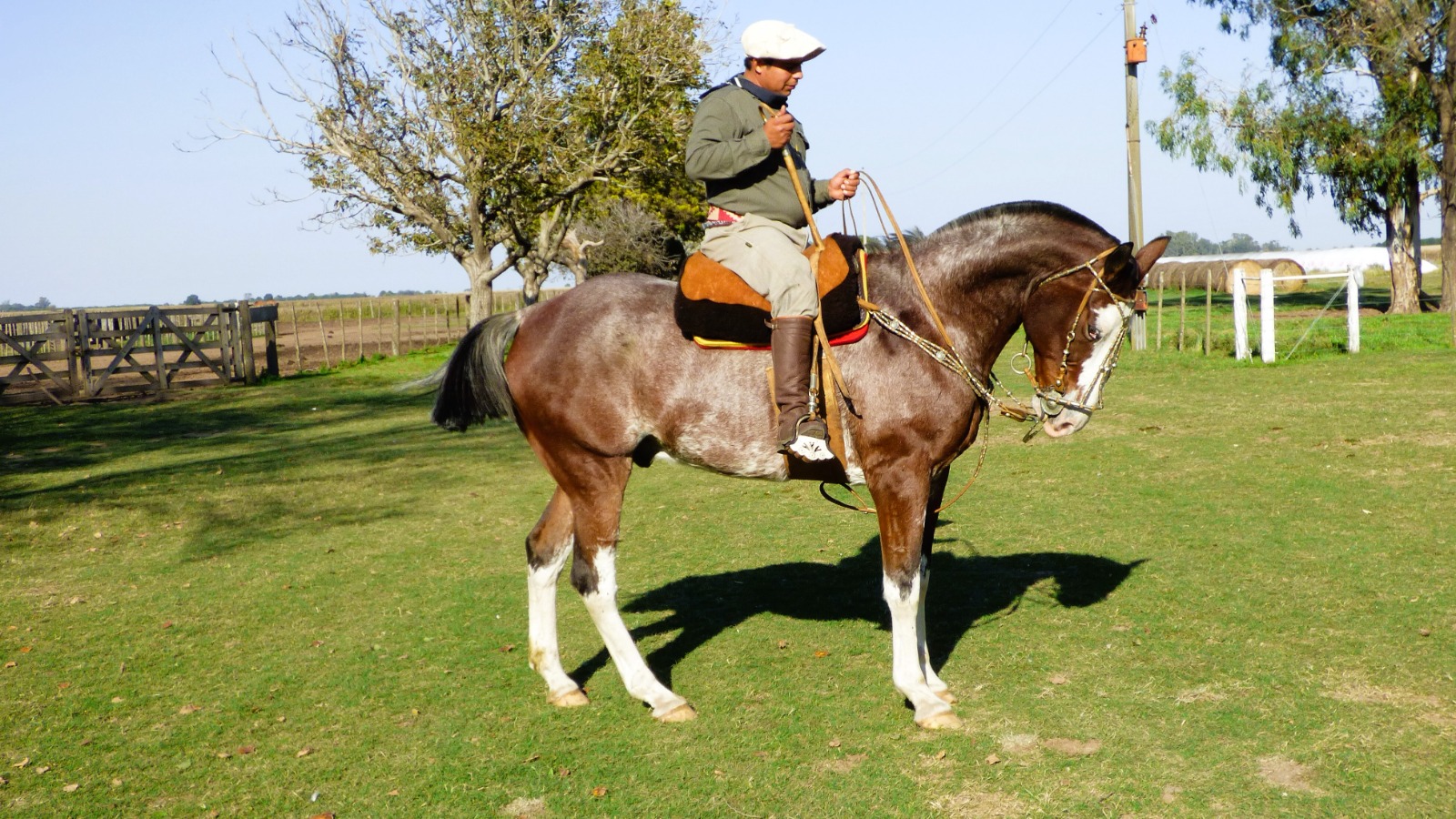 Caballo rosillo overo manso escuela entrepesado de 9 años de edad con una alzada superior a 1.60 a la cruz, que se destaca por su mansedumbre, adaptándose de manera muy buena a distintas manos de uso, para personas con un nivel básico de equitación, teniendo equilibrio en el recado, sabiendo estribar y llevando parejas las riendas ya es un animal para disfrutarlo. Se lo agarra fácilmente estando suelto, muy lindo físico, liviano de abajo y de mucha caja, tiene un galope muy comodo. Está acostumbrado a la zona urbana, a comer ración, a que se lo arregle sin maneas, fácilmente, acostumbrado a cinchas de hilo, lona o cinchas de cuero, especial para disfrutarlo en desfiles, lucirse con lindos emprendados