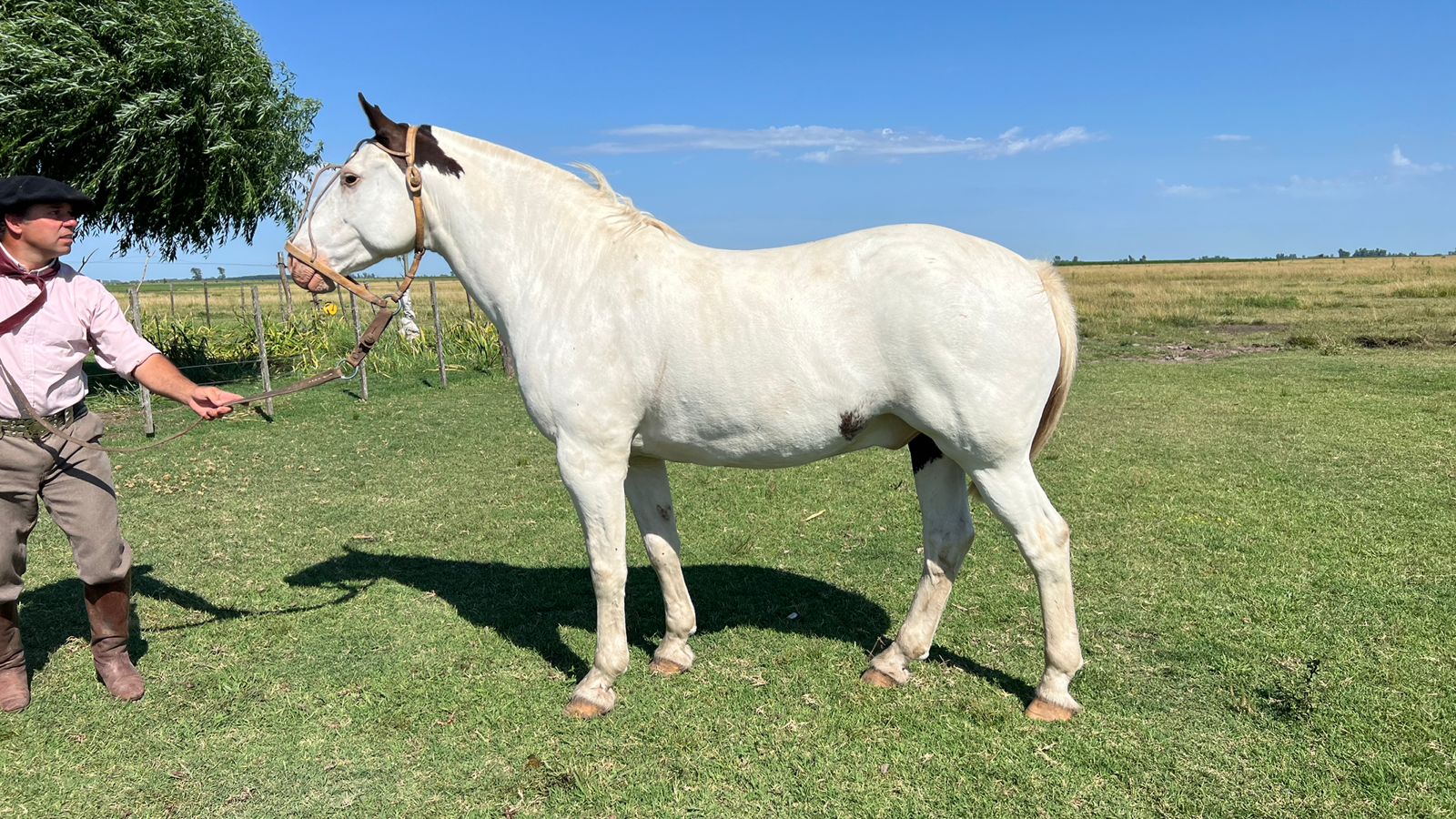 Caballo entrepesado de pelo tobiano muy particular, sirve para desfile o trabajo, muy manso pero caballo de campo que no conoce el pueblo, de poncho y lazo manso, de buena rienda, de temperamento tranquilo, solo le falta franela, trato de abajo más que nada, lo recomiendo para jinetes con manejo básico como mínimo, que sepa llevar las riendas parejas y conocimiento básico. Tiene 1.48 de alzada y 6 años. En la medida que puedan, se recomienda venir a probar y revisar, como a todos los caballos en general. Se encuentra en Ranchos, Pcia. de Bs As. Se entrega con la documentación sanitaria correspondiente. Fletes compartidos a todo el país a cargo del comprador.