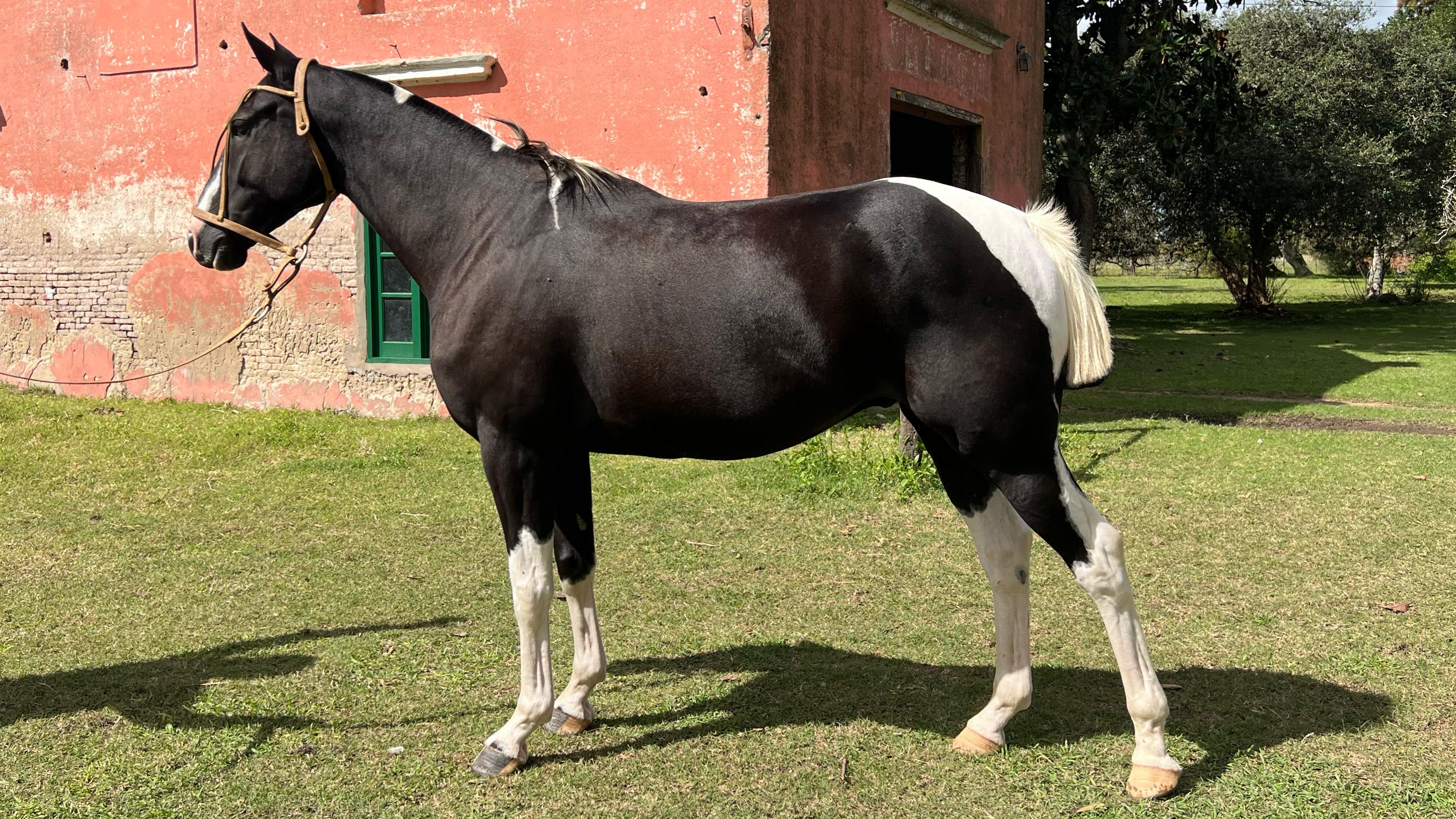 Caballo tobiano negro mestizo de 1.56 de alzada, de 5,5 años de edad. Ideal para cabalgatas, desfile, paseo, trabajo, o articularlo con lo que gusten. Conoce la zona urbana, de poncho y lazo. Muy tranquilo, bien domado. Tiene un pequeño corte en la lengua, pero no le afecta en nada. Se encuentra en Chascomús provincia de Buenos Aires. Se recomienda venir a probarlo. Consultar por fletes compartidos.