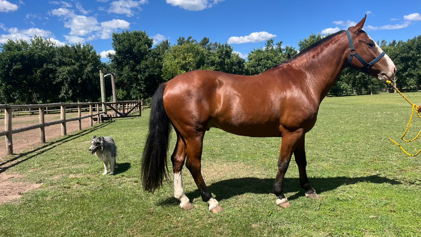Es de muy buen montar, sumamente manso sin maldad, sabe estar herrado, con manta, a galpon, sube sin problemas al trailer, conoce la zona urbana.