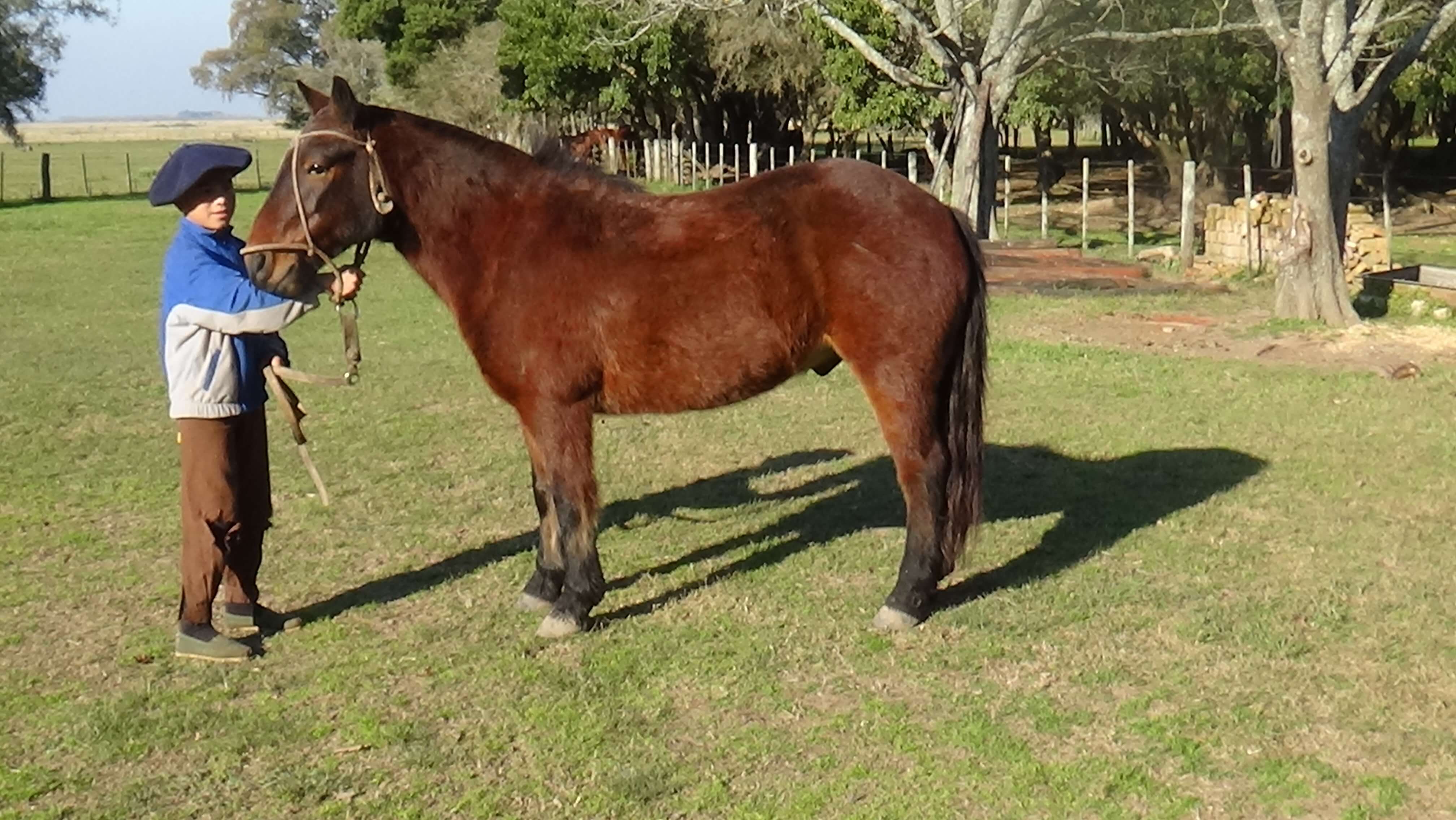 Petiso zaino , de 8 años de edad y 127 de alzada. Muy lindo y parejo, muy equilibrado en sus formas y tamaño. Es manso garantido, cumple con muchas funciones de trabajo, recreativas y de transporte a la escuela. Sano y bien cuidado. Se encuentra en un campo ganadero cerca de Verónica. Conoce el campoy la ciudad. Se entrega con documentación de traslado. Coordinar visita para revisarlo y probarlo.