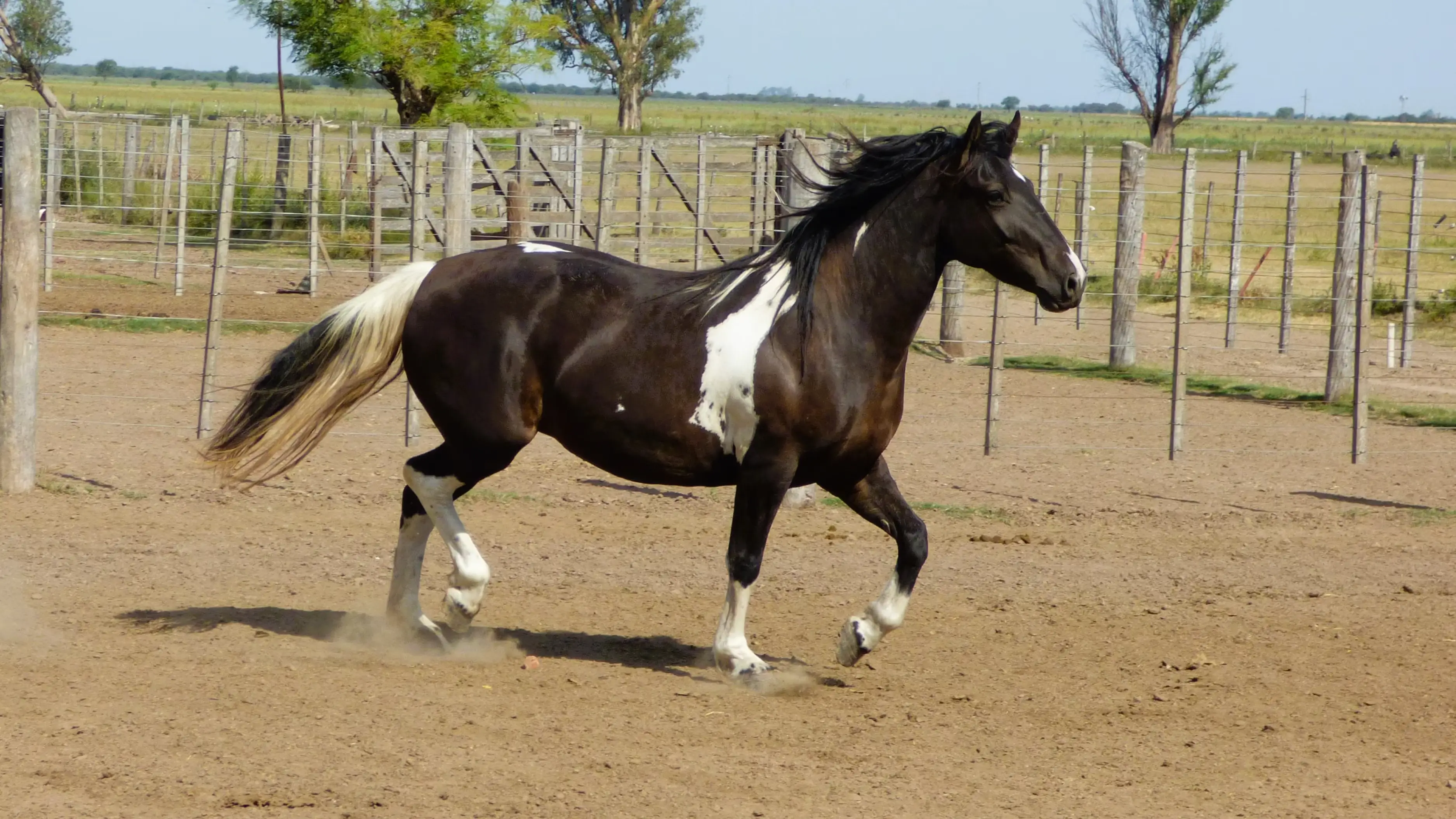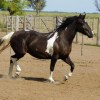 Potra Tobiana negra entrepesada hija de una yegua criolla de mucha caja por un padrillo entrepesado, de 3 años de edad y una alzada entre 1..48/1.49 a la cruz, sana de todos lados y destacada morfológicamente y por su pelo, destinada a madrina, montada o como madre para buscar pelo