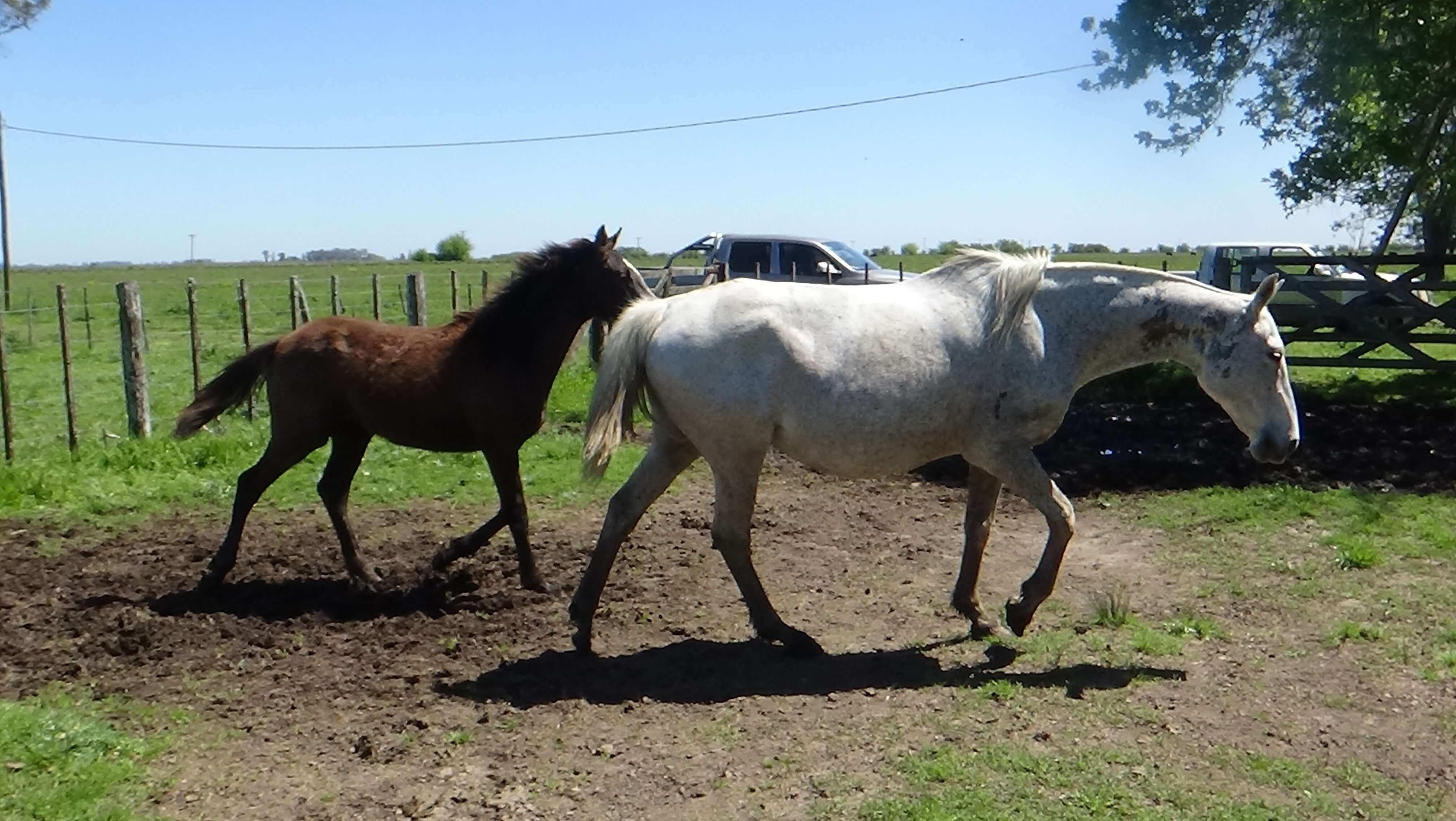 La potranca de 1 año es bien mestiza, también tordilla, hija de un polero registrado que es el que también ha preñado actualmente a la yegua.